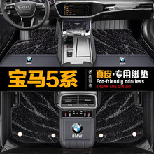 宝马5系真皮脚垫 适用于宝马525li 530li 535li 540li专车专用大全包围汽车脚垫 黑色【真皮+星空毯】带车标 2021年21款宝马5系