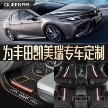 适用于丰田凯美瑞脚垫八代七代汽车丝圈2021年全大包围新款车垫地毯丝改装包门槛2020款新防水 【全包围双层款】黑金皮革+雪妮丝圈 【专车限定款】...