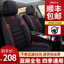 豫垫坊汽车坐垫全包围四季通用亚麻布汽车座垫座套适用于大众朗逸速腾迈腾卡罗拉哈弗H6桑塔纳座垫套 神秘黑红豪华版 其余五座车型均可用/下单留...