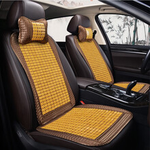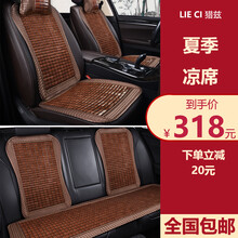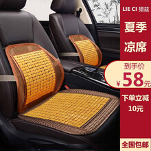 猎兹 汽车坐垫夏季小蛮腰竹片竹子竹席凉垫夏天透气座垫三件套家用办公方垫单片男女四季通用座椅垫 优雅咖-【1个单片+一个腰靠】
