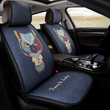 紫风铃汽车坐垫仿亚麻单张四季通用卡通可爱汽车座垫单片车垫四季垫单个汽车座套车座椅套全包围 全包围款-整套-标准版-图案直接备注默认猫头鹰