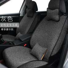 汽车坐垫四季通用汽车座垫全包免绑夏季凉垫通用亚麻车坐垫四季垫 尊享全包-灰色