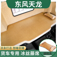 适配东风天龙商用车装饰KL改装VL品KC驾驶室内冰丝卧铺凉席床垫子 东风天龙牵引车【下铺藤席】(1个枕头)