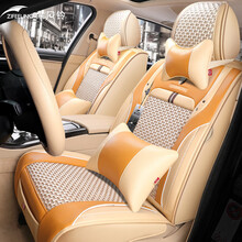 紫风铃汽车坐垫夏季皮革冰丝全包围四季通用汽车座套座垫适用于迈腾速腾RAV4雷凌起亚K3卡罗拉H04 温馨米-豪华版 5座通用适合99%车型使用