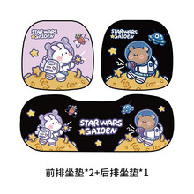 车垫夏季冰丝凉垫汽车坐垫单片可爱网红夏天透气四季通用座垫座套 宇航员小熊+紫色小兔坐垫三件套