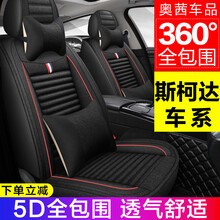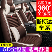 晨茜斯柯达汽车座垫全包围车内饰用品21款新新明锐Pro柯珞克汽车坐垫透气亚麻布艺座椅套夏季四季通用 亚麻豪华版-黑色 新明锐/明锐PRO