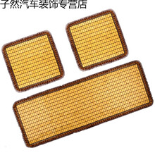 适用汽车坐垫单张凉席通用无靠背竹片四方垫单件防滑凉垫小三件套竹块2021夏季新款汽车座椅套 竹片米色三件套