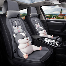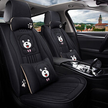 2015款2016新款大众速腾朗逸汽车座套亚麻汽车坐垫四季通用布艺座垫卡通可爱座椅套 卡通版温馨米 大众朗逸宝来捷达途观速腾高尔夫polo帕萨特桑塔纳