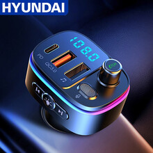 现代(HYUNDAI)车载蓝牙接收器 汽货车载MP3音乐播放器5.0免提电话U盘PD充电器一拖三 T65【三口】PD口+QC3.0闪充+七彩氛围灯 官方标配