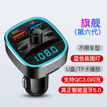 自由牛 车载MP3播放器蓝牙接收器汽车音响usb多功能通用U盘点烟器充电器 旗舰(第六代)蓝牙5.0版【蓝光氛围灯】QC3.0 官方标配