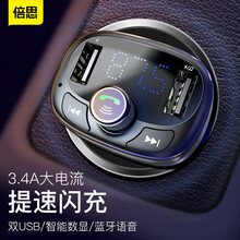 倍思(baseus)车载mp3播放器汽车充蓝牙免提电话 FM发射器接收器 车载充电器点烟器式双USB 带拓展口 车载蓝牙MP3 黑