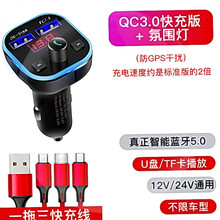 卡贝罗新款车载mp3音乐播放器多功能蓝牙接收器汽车U盘点烟器式车充电器 QFC3.0.快充款--(带灯)+三合一 快充线 官方标配