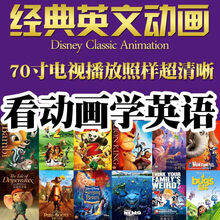 英文动画片U盘儿童学习英语原版原声电影有台词本早教启蒙优盘 套餐三64G(50部)中英字幕