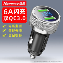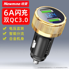 纽曼(Newmine)车载充电器一拖二汽车手机快充6A双QC3.0汽车点烟器插头双usb接口闪充 金色数显车充