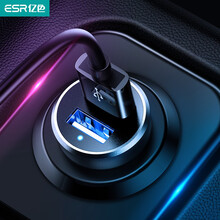 亿色(ESR)车载充电器车充 汽车点烟器双USB一拖二 车用手机插头转换器苹果安卓通用快充12-24V 金属迷你-黑色
