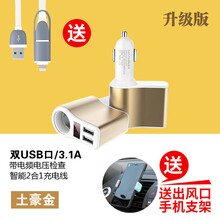 适用于车载车上充电器头充手机点烟器双头usb迷你车冲车内车用小车气车汽车用品 升级版白金色【送手机支架+数据