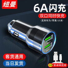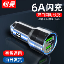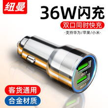 纽曼车载充电器快充汽车点烟器充电器双口USB一拖二金属车充QC3.0汽车车用手机闪充苹果安卓小米华为 【太空银+LED氛围灯】双QC-6A/36W快充