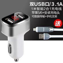 现代瑞纳悦纳RV悦动朗动领伊兰特ev手机车载充电器汽车点烟器快充 车充合金款高贵银 数据线+支架