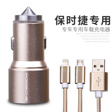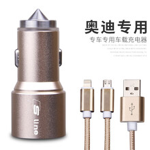 雪美莱 汽车车载点烟器充电器金属安全锤车充奔驰宝马奥迪大众双USB转换器手机平板汽车充电器 吉利博越博瑞帝豪GS/GL远景X1X3S1瑞迪佳乐 香槟金