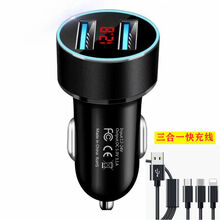 车载充电器快充 车载充电器手机快充点烟器转换插头汽车用USB一拖二手机充电多用定制款 普通无数显【随机颜色】