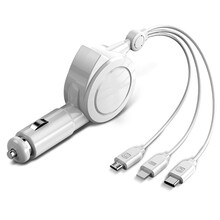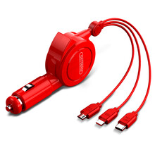 适用于伸缩车载手机充电器一拖三带线快充插头汽车车充数据线一拖二车功能车上usb接口12v车上电源点烟 中国红-1.0米【任意拉伸/一键回缩】兼容所...