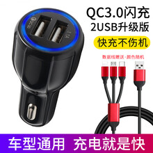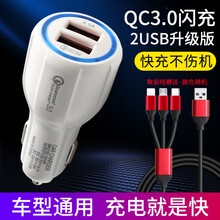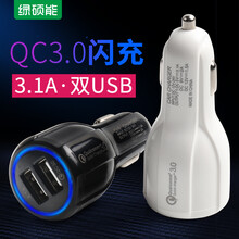 绿硕能 车载充电器汽车车充一拖二点烟器插头usbQC3.0车用多功能手机快充 双USB闪充【QC3.0快充】黑色