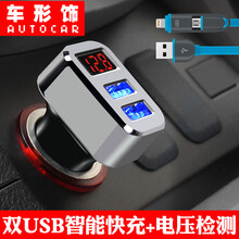 车形饰 汽车车载充电器点烟器智能快速充电头多功能LED电压显示双USB手机车充插头 银黑 别克昂科拉昂科威GL8君威君越凯越威朗英朗昂科雷