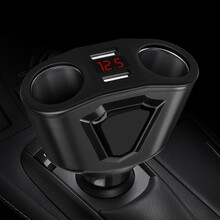 月中影 车载充电器QC3.0双USB数显充电器 电脑行车记录仪充电器 通用汽车手机充电器 汽车用品 黑色款