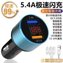 车载充电器快充 车载充电器快充多功能一拖三点烟器转换插头车充电器闪充手机通用定制款 【车载充电器】不含数据线 【4.8A快充版】数显-中国红