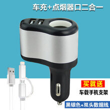 车载充电器车充汽车用车冲手机冲电头插多功能车在车裁车上 升级版黑银色【送手机支架+数据