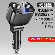车载充电器一拖三一拖二点烟器转换插头usb手机多功能汽车冲车充 酷炫黑 标准款【双USB+双点烟口+氛围灯 】