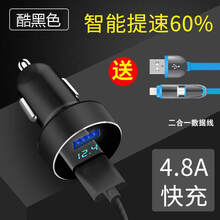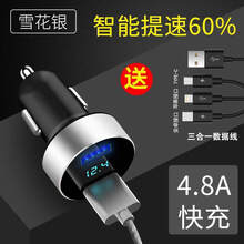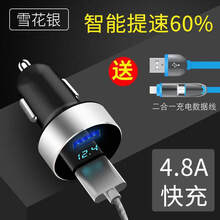 于汽车载快速充电器车上苹果华为手机车充5A快充头车用USB接口插头 HY-36雪花银+二合一数据线