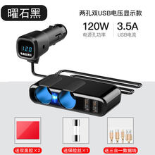 车充快充多口通用大功率车载快速充电器一拖三快充多功能转换插头手机闪充汽车上用点烟器汽车用品 两孔双USB电压数显款【S数据线】