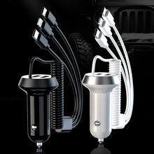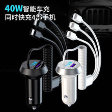 车载充电器快充 车载充电器快充一拖三大功率带线苹果华为vivo多功能点烟器5A闪充定制款 【标准版】17W快充 雅典黑