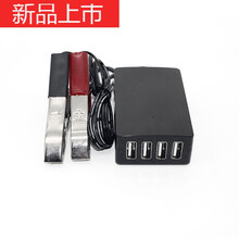 适用于12v-24v电瓶转5vUSB多功能转换器4USB夹子摩托车手机充电器快充头车用 5V-4USB-1米线