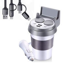 点缤奥迪 A3 A4L A6L A8L Q3 Q5 Q7车载充电器大众奔驰多功能车充 电压检测款-黑灰 带手机架功能