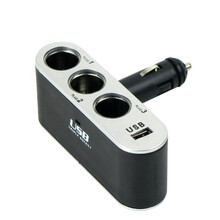 车太太 汽车车载充电器点烟器一拖三扩展插座插头车用电源带usb接口手机车充 汽车用品超市 一拖三车充