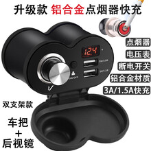 WUPP摩托车点烟器 充电 防水铝合金车载手机usb充电器带开关电压表12V改装配件 黑色铝合金 双支架款