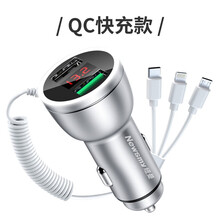 纽曼车载充电器汽车一拖二点烟器转换插头闪充多功能usb手机快充 (数显合金QC3.0快充)自带原装一拖三数据线
