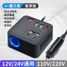 车载逆变器通用12v24v转220v多功能电源转换器充电器插座手机充电器 魔方黑色【智享12v小车专用款】带数显QC3.0快 220V