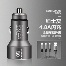 莱琥车载手机充电器头点烟器转换双USB车充快充适用于雷克萨斯UX260ES300LX570ES200 灰色车充(带三头数据线)