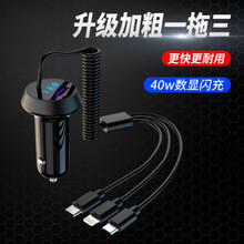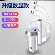 适用于三合一数据线车载充电器点烟器转换头一拖三数显oppo华为手机快充 双USB款炫黑【可充:苹果+安卓-L32
