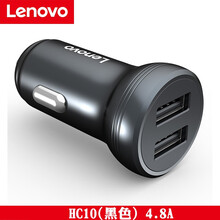 联想汽车车载充电器 迷你金属车充快充插头双USB点烟器一拖二适用华为小米苹果安卓手机平板通用 联想HC10 金属款(黑色)4.8A输出
