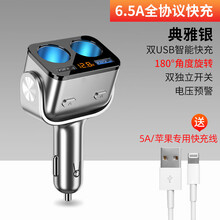 车载充电器快充汽车货车多功能一拖三点烟器转换插头手机快速闪充 快充闪充款全协议(典雅银6.5A)送5A苹果专用快