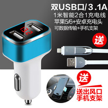 适用于大众新朗逸POLO宝来捷达迈腾速腾CC途观车载充电器双USB车充专用汽车用品 GQ数显款【天际蓝】送手机支架+