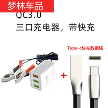 适用于电瓶车手机充电器12V24V通用摩托车电瓶车载快充蓄电池usb转接头 5A三口充电器+Type-c快充线