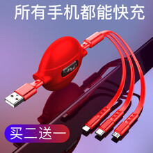 适用于可伸缩数据线三合一苹果安卓华为快充一拖三手机充电器三用收缩三线多功能车载用带插头三个头通用 买二送一,买多更优惠