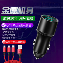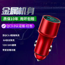 车载充电器一拖二多功能车充手机快充点烟转换插头usb汽车用接口 红色6A双QC3.0智能快充