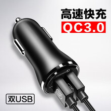 车载PD充电器 QC3.0双口车载充电头36W快充车充头 手机快充 车充头 黑色QC3.0+2.4A(双USB)