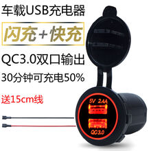踏板摩托车手机车载usb充电器改装防水汽车充24V闪充双usb口快充 QC3.0闪充红色光圈15CM线束